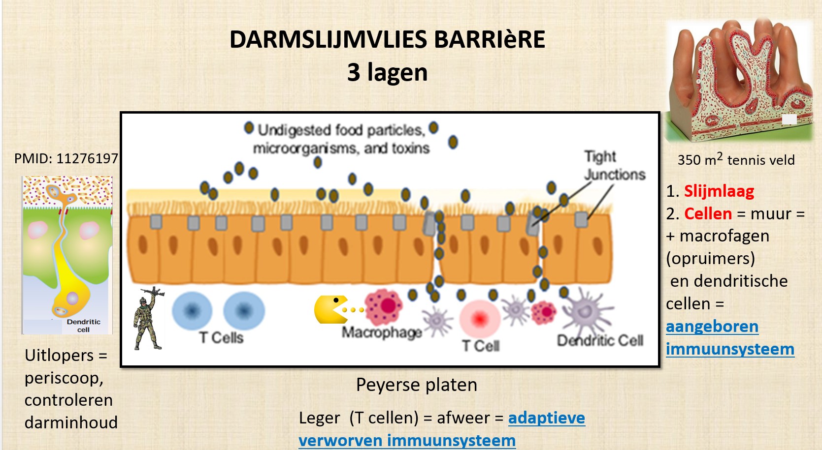 Als er te veel ongunstige bacteriën aanwezig zijn ten opzichte van gunstige (een onevenwicht of dysbiose) kan onze darmwand stoffen uit onze voeding doorlaten die eigenlijk niet thuis horen in ons lichaam: chemicaliën, pesticiden, zware metalen, allergenen, microplastics, ... Men spreekt dan van een lekkende darm of 'leaky gut'. Ons darmslijmvlies bestaat uit 1 laag cellen met daarop een beschermende slijmlaag. Goede darmbacteriën produceren korte ketenvetzuren (onder andere boterzuur of butyraat ) die het darmslijmvlies gezond houden. De cellen worden mooi tegen elkaar gehouden met velcro's (tight junctions). Bij een dysbiose komen de tight junctions open te staan. Ook glyfosaat zet de tight junctions open. Direct onder die dunne cellaag bevindt zich het grootste deel van ons immuunsysteem. 70% bevindt zich in de darmwand.
