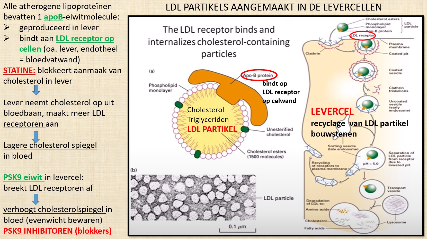 In je bloed worden cholesterol en triglyceriden (vetten uit de voeding en triglyceriden die in de lever ontstaan door overmatige opname van snelle of geraffineerde suikers) getransporteerd in een partikel dat een wateroplosbare wand heeft. Vetten kunnen anders niet getransporteerd worden in het waterige bloedplasma. Het omhulsel bestaat uit eiwitten (proteïnen), binnenin zitten de vetten of lipiden (cholesterol en triglyceriden). We noemen het geheel lipoproteïnen. De lever zorgt voor de meeste cholesterolaanmaak in het lichaam, de cholesterol wordt samen met triglyceriden getransporteerd in LDL partikels (lage densiteit lipoproteïnen) naar de organen en cellen om celwanden en hormonen aan te maken.
